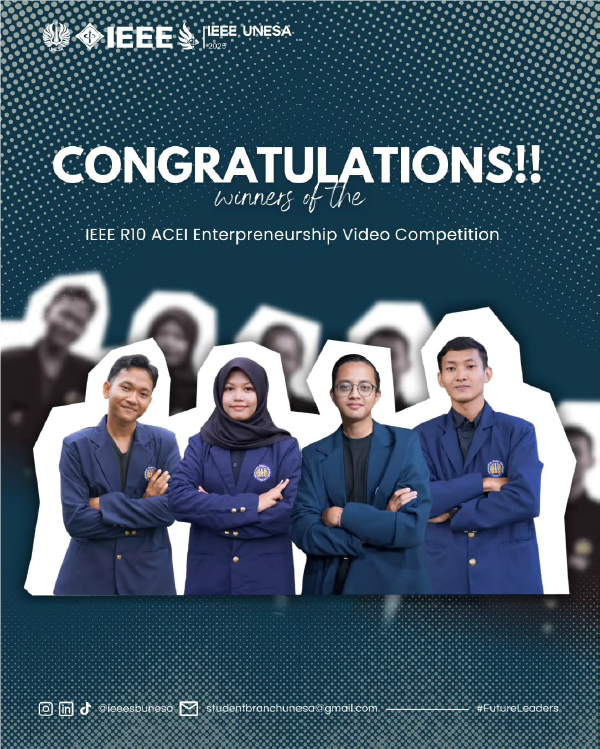 Surabaya, 2 Agustus 2025 — Kabar membanggakan datang dari Universitas Negeri Surabaya (UNESA). Empat mahasiswa Program Studi S1 Teknik Elektro yang tergabung dalam IEEE Student Branch UNESA berhasil mengharumkan nam