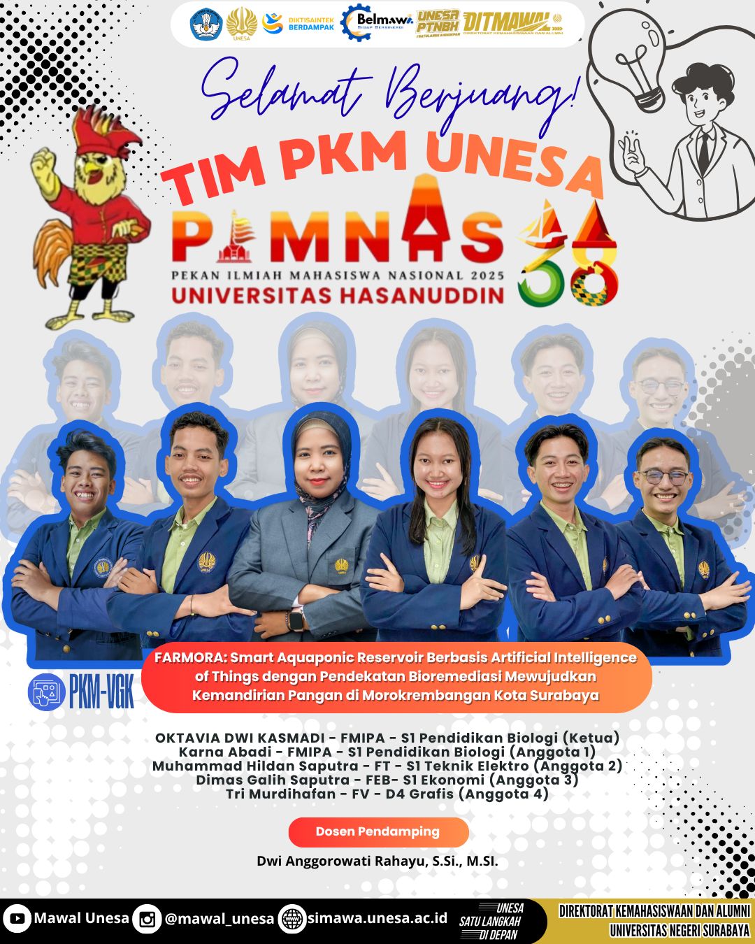 Surabaya, 8 November 2025 — Kabar membanggakan datang dari Universitas Negeri Surabaya (UNESA). Salah satu tim unggulan dari UNESA berhasil lolos dan akan berkompetisi dalam ajang Pekan Ilmiah Mahasiswa Nasional (PI