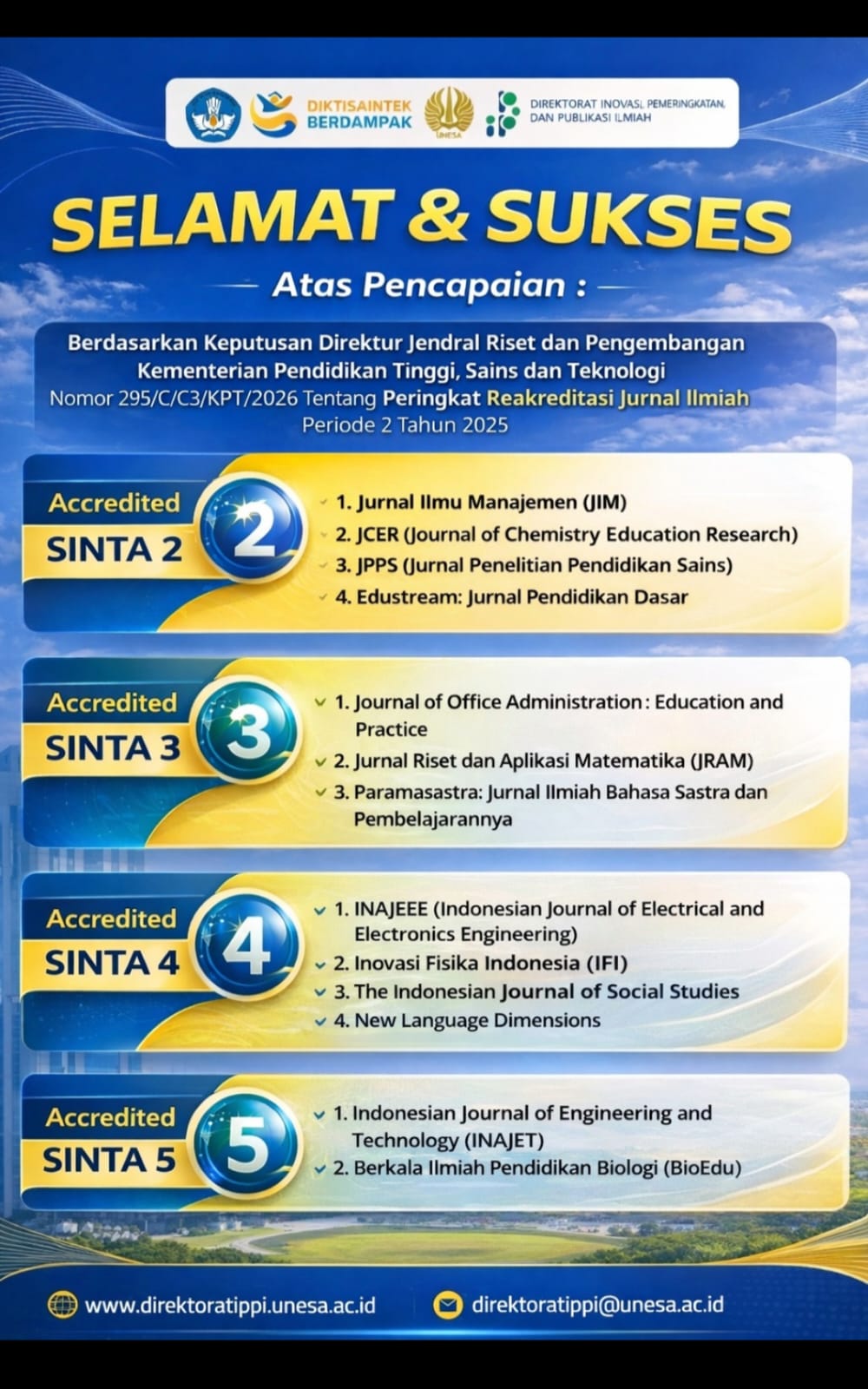 Selamat atas Reakreditasi Jurnal Ilmiah UNESA
